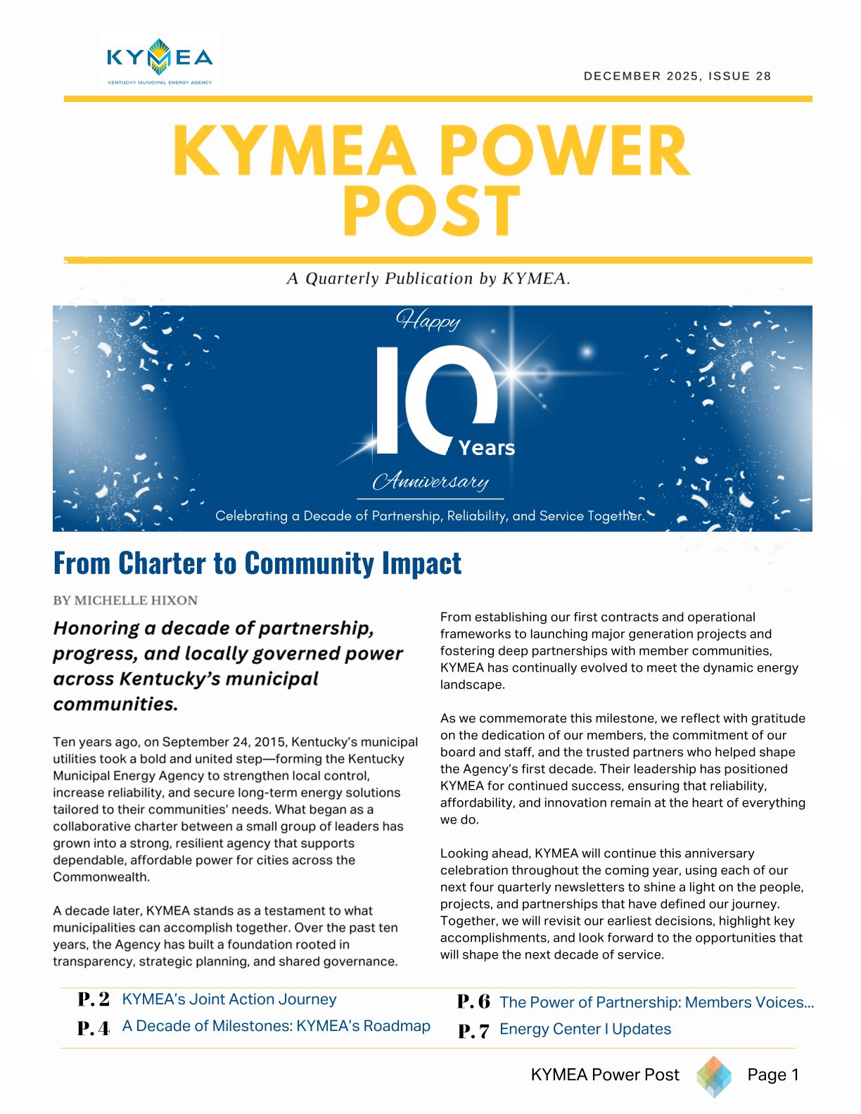 KYMEA POWER POST – Q3 2025 Posted on December 19, 2025 (December 19, 2025) by hatfield developer Learn and read more about KYMEA and its members in the Power Post. […] Read More… from KYMEA POWER POST – Q3 2025